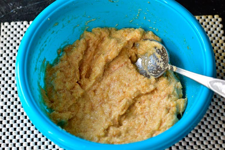 3. Dodajemy sodę, sól , cukier i kaszę mannę dokładnie mieszamy i odstawiamy na 20-30 min aż kasza spęcznieje.