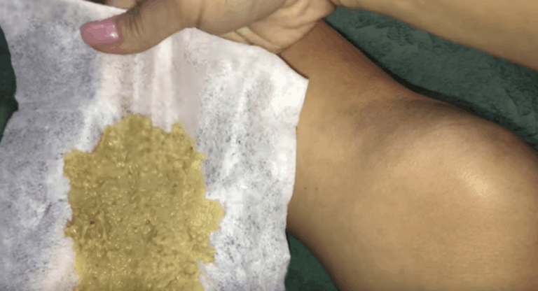 Przygotowany preparat ma dość płynną konsystencję, dlatego należy nałożyć go na coś zabezpieczającego, na przykład gazę, po czym stroną zawierającą miksturę należy przyłożyć do bolącego miejsca, a następnie zabezpieczyć dokładnie poprzez zabandażowanie miejsca bądź użycie plastrów, tak aby gaza nie zsuwała się z wybranej partii ciała.