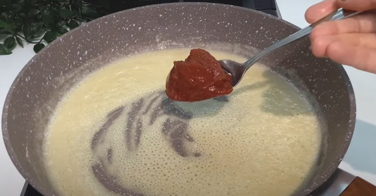 1.Na małym ogniu podgrzej masło. Trochę warzyw dodaj, gdy zacznie się przepalać. Jak rozpuści się masło, pszenną mąkę wsyp, aż złotobrązowy kolor nabierze. Koncentrat pomidorowy dodaj, i wymieszaj ponownie. Dolewaj wody do momentu połączenia się wszystkich składników.