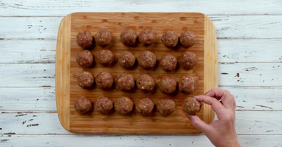 1. Wymieszaj ze sobą dwa rodzaje mięsa, dodaj pokrojoną drobno cebulę, przeciśnięty przez praskę czosnek, bułkę tartą, jajko, sól, pieprz i mleko. Dokładnie wymieszaj i z gotowej masy mięsnej, uformuj małe kulki. Potem przykryj je folią spożywczą i wstaw do lodówki na 2 godziny.