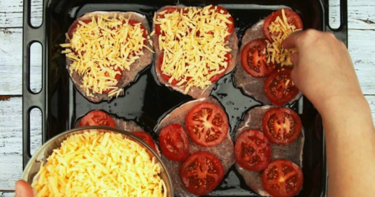 1. Na samym początku umyj, po czym osusz za pomocą ręcznika papierowego mięso, następnie pokrój je tak jak na kotlety. Pokrojone mięso rozbij tłuczkiem. Następnie blachę posmaruj najlepiej olejem słonecznikowym. Do tak przygotowanej blachy wkładaj rozbite kotlety. Całość przypraw szczypta soli oraz pieprzu. Umyte pomidory pokrój na cienkie plasterki. Następnie układaj je na rozbitym mięsie. Do głębokiej miseczki lub na talerz zetrzyj ser na dużych oczkach. Następnie połową sera posyp przygotowane mięso oraz pomidora.