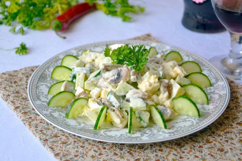 1.Sałatka z dodatkiem pieczarek oraz ogórków