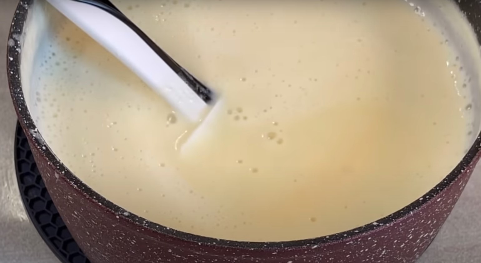2. Do garnka przecedź przez sito otrzymaną mieszankę. Gotuj przygotowaną masę przez 2 minuty , cały czas mieszając.