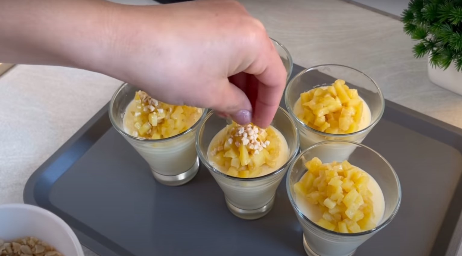 3.Po upływie tego czasu przelej masę do przygotowanych pucharków. Gdy masa całkowicie przestygnie umieść pucharki w lodówce i przechowuj je przez co najmniej 2 godziny. W miedzy czasie możesz je udekorować.