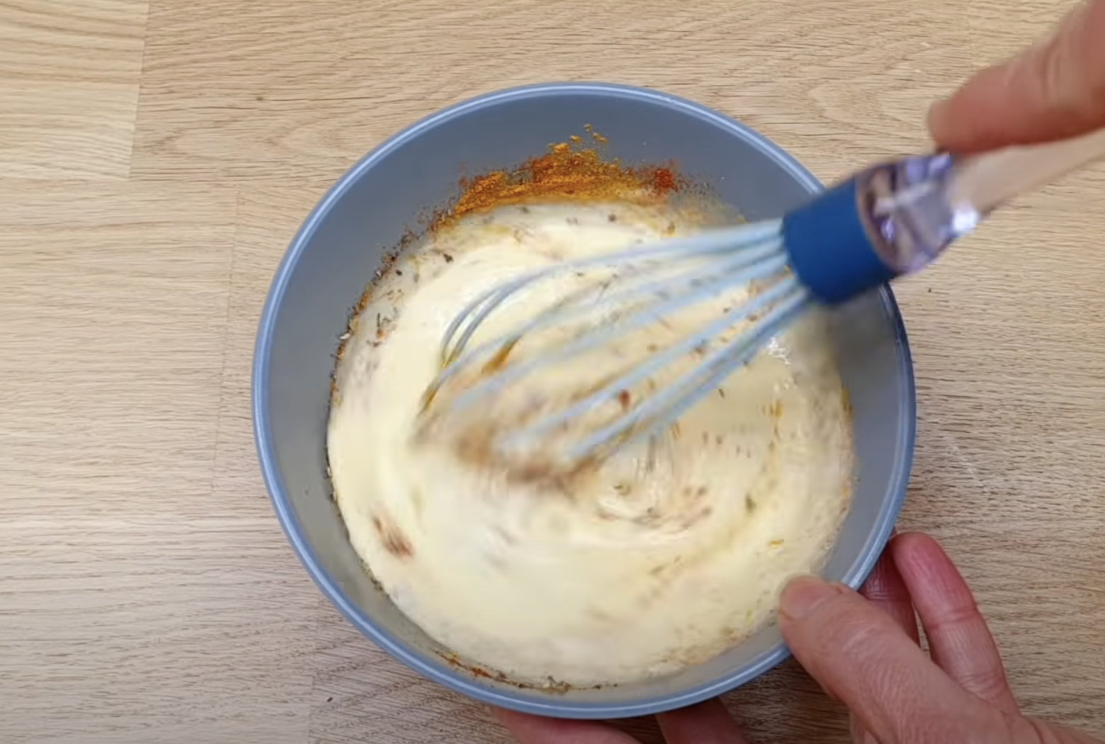 2. Całość dokładnie wymieszaj, następnie wlej do kurczaka. Przyprawę do gyrosa, możesz przygotować sama w domu. Potrzebna będzie czerwona papryka i i mieszanka ziół.