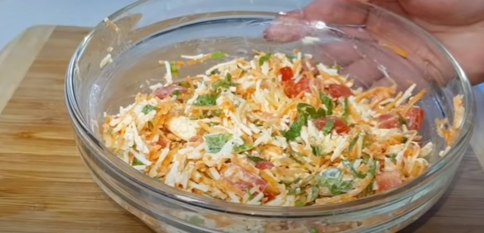 3.Za pomocą tarki zetrzyj ser na dużych oczkach, następnie połącz go z serkiem topionym. Obierz marchew, po czym zetrzyj ją także na tarce, umytą pietruszkę drobno posiekaj, całość dokładnie wymieszaj w dużej misce.