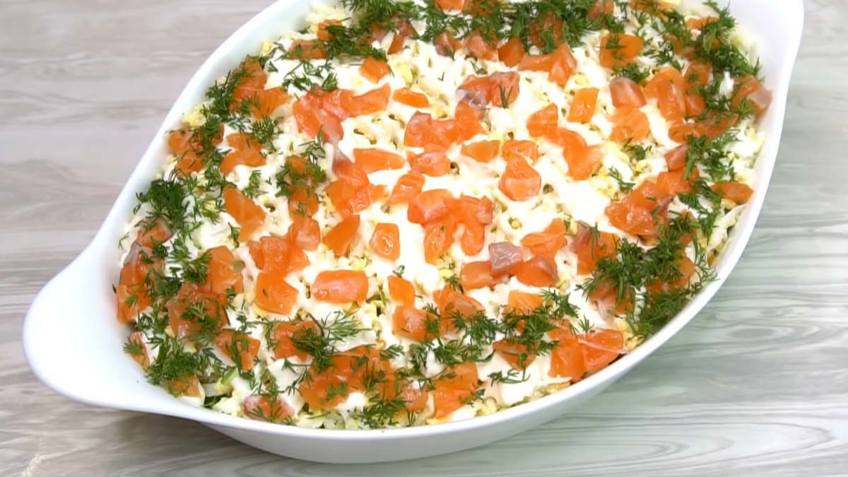 Sałatka francuska z łososiem i świeżym ogórkiem – Warstwowa piękność, która ze stołu znika błyskawicznie. Zachwyci każdego bez wyjątku
