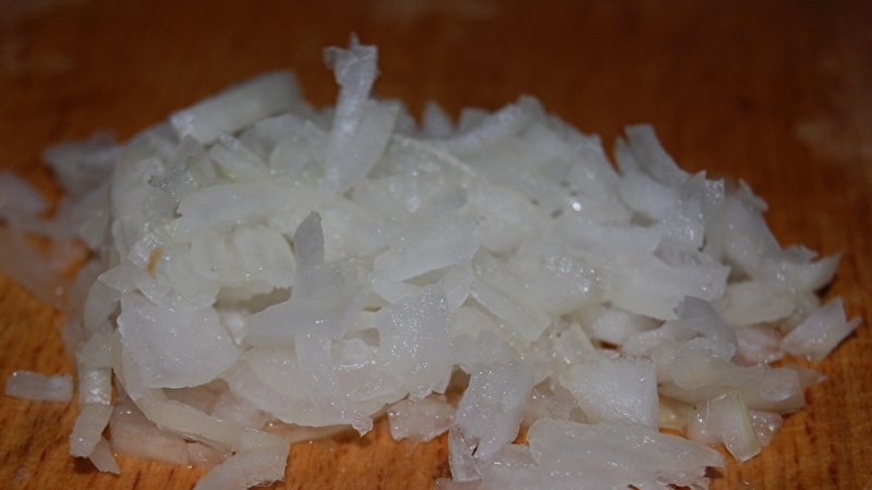 1.Obierz cebulę, następnie na małą kosteczkę ją pokrój.