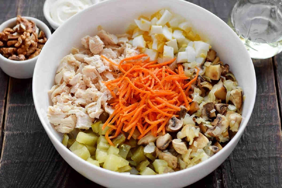 Lekko pikantny smak koreańskiej marchewki, świetnie łączy się z delikatnym filetem z kurczaka, jajkiem i pieczarkami. Ekspresowe wykonanie i wyjątkowy smak tej sałatki sprawia, że gości w moim domu bardzo często i znika ze stołu błyskawicznie. Do dzieła!