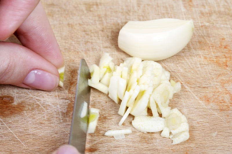 6. Do osobnej miseczki posiekaj czosnek.