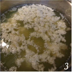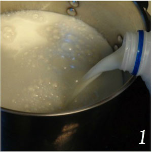 Mleko wlej do garnka ze stali nierdzewnej i mieszaj dodając kwasek cytrynowy. Utrzymuj temperaturę 31 stopni. Nie przestawaj mieszać!