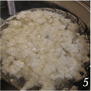 Po około 5 minutach w w garnku powinny pojawić się wyraźnie oddzielone grudki. Jeżeli nie uzyskaliście takiego efektu, to znaczy że serkowi potrzeba więcej czasu.
