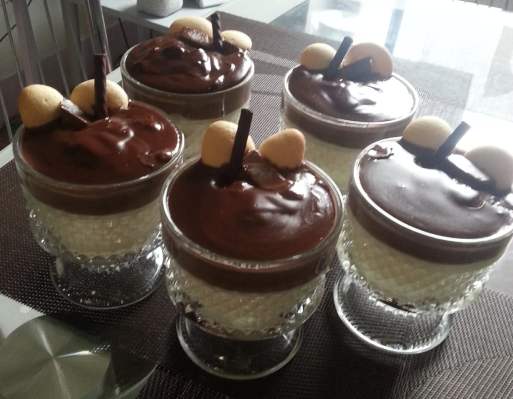 1.Na sam początek przygotuj wszystkie kubeczki. W misce wymieszaj twaróg, cukier puder, śmietanę oraz cukier waniliowy. Za pomocą miksera połącz ze sobą wszystkie składniki.