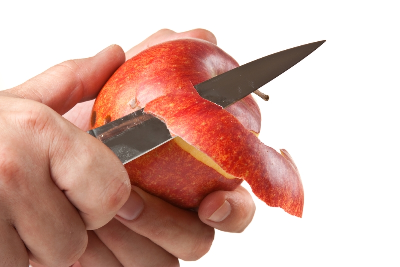 2. Wytnij z jabłka gniazdo, pokrój na mniejsze cząstki, wrzuć do blendera.