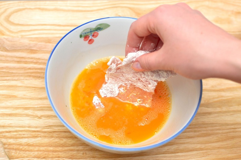 4. Aby panierka była złota, najpierw zanurz mięso lub rybę w ubitym jajku, a następnie w bułce tartej.