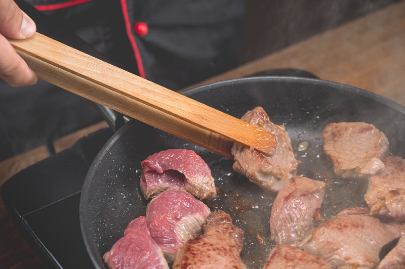 5. Nie zaleca się zbyt często przewracać na drugą stronę mięsa podczas smażenia.