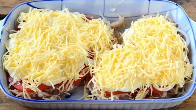 Dania główne Soczysty kurczak, zapiekany z pomidorem i ziemniakami z dodatkiem majonezu i sera stanie się doskonałym obiadem. Last updated lut 14, 2022 3 240 Soczysty kurczak, zapiekany z pomidorem i ziemniakami z dodatkiem majonezu i sera stanie się doskonałym obiadem. Zaskoczysz całą rodzinę takim obiadem. Składniki: piersi z kurczaka 3 ziemniaki 1 pomidor cebula 2 łyżki majonezu 100 gram tartego sera pieprz sól Przygotowanie: 1. Oczyścić i umyć piersi z kurczaka. Pierś włożyć do naczynia do pieczenia i doprawić solą i pieprzem. Obrać ziemniaki i zetrzeć je na tarce. 2. Tartymi ziemniakami posypujemy mięso. Pomidory kroimy w krążki , a cebule w półksiężyce i umieszczamy je na ziemniakach. 3. Smarujmy majonezem i posypujemy serem. 4. Rozgrzewamy piekarnik do 180o C i pieczemy około 30 minut. Smacznego !