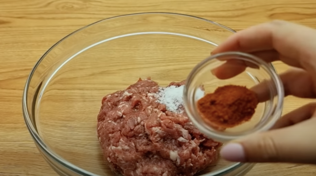 1. W misce, wymieszaj mięso mielone z solą, pieprzem i ziołami.