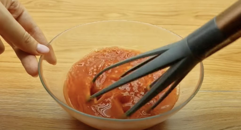 7. W wygodnym naczyniu, wymieszaj dokładnie wodę z koncentratem pomidorowym.