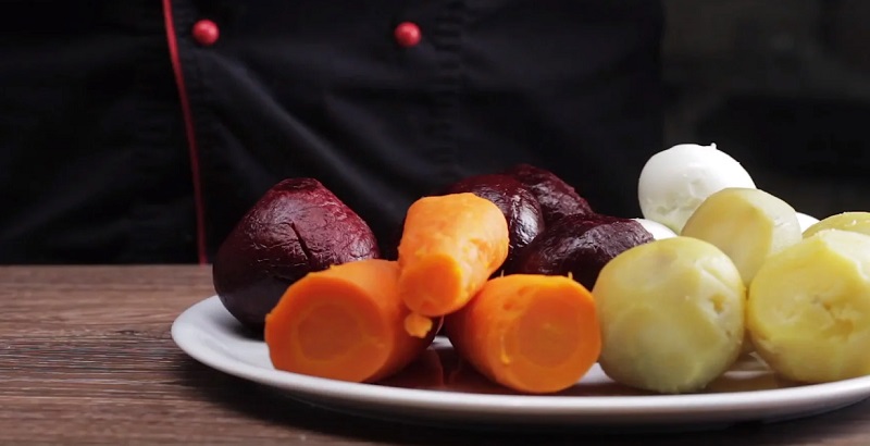 1. Ugotuj do miękkości buraki, marchewki i ziemniaki. Jajka ugotuj na twardo.