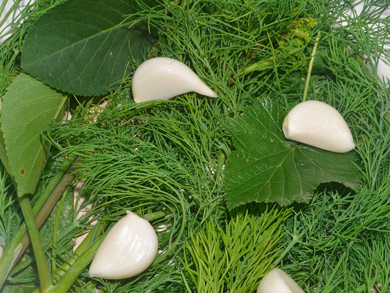 3. Osuszony z wody koperek umieść w słoikach. Nie upychaj liści na siłę, muszą być ułożone luźno.