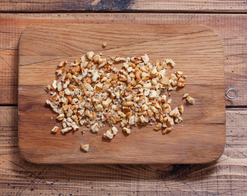 5. Na koniec posyp równomiernie posiekanymi orzechami włoskimi.