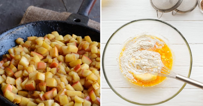 Pozostały cukier (30 g) rozpuść na patelni, a następnie dodaj jabłka. Należy pamiętać, żeby jabłka nie były zbyt miękkie.