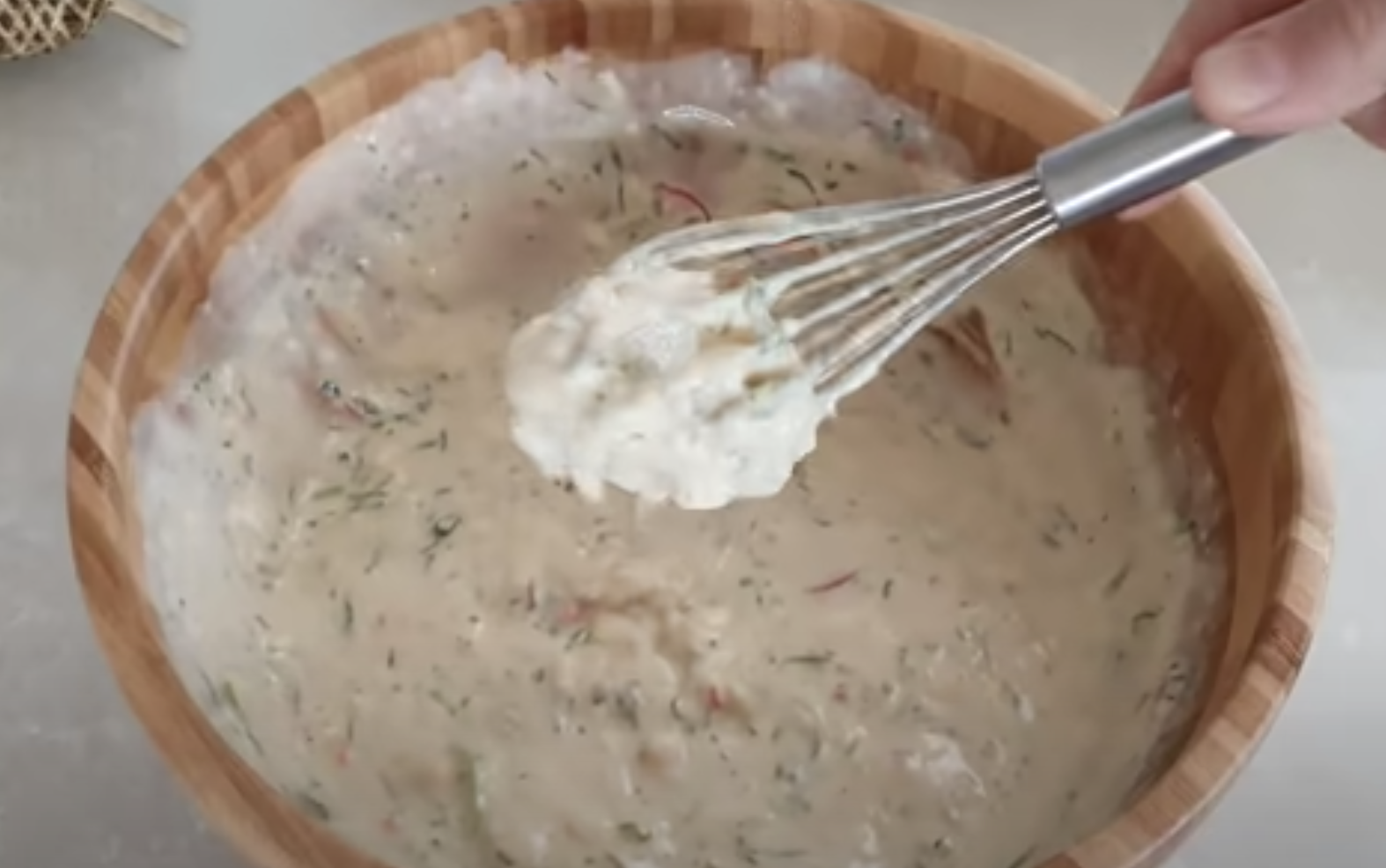 4. Do przygotowanej masy dodaj stary ulubiony ser. Następnie dodaj mąkę, po czym całość bardzo dokładnie wymieszaj i odłóż na bok na pół godziny.