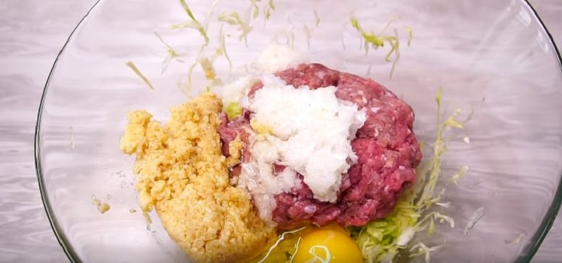 3. Dodaj mielone mięso do kapusty, a także drobno posiekaną cebulę. Dobrze wymieszaj i dodaj ugotowaną kaszę, jajko, sól, pieprz i paprykę.