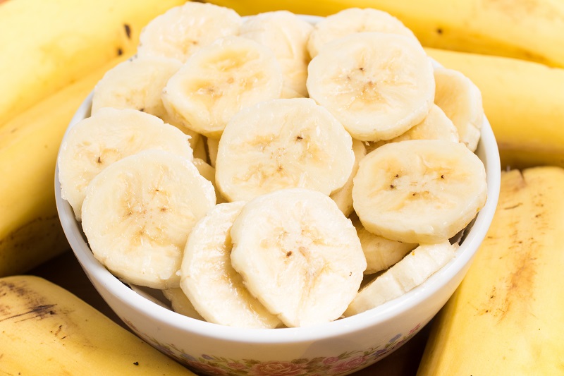 2. Pokrój banany w plasterki, możesz je lekko posypać cukrem waniliowym, aby uzyskać jeszcze bardziej interesujący smak.