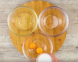W drugiej miseczce ubijamy samą śmietankę, a w trzeciej same białka.
