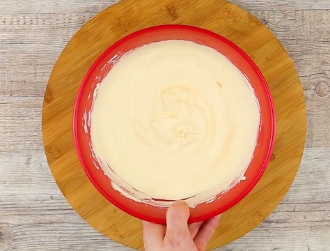 Wkładamy jedną część w drugą tworząc foremkę, którą wypełniamy do połowy masą.