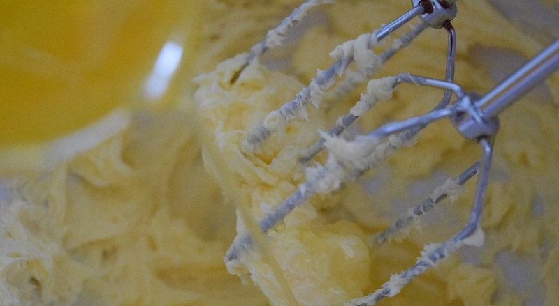 4. Utrzyj masło z cukrem, kolejno dodawaj jajka, z każdym ubijaj masę przez 1 minutę, następnie dodawaj kolejne.