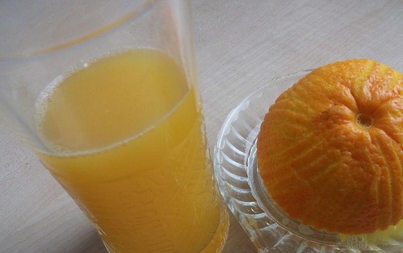 2. Wyciśnij sok z pomarańczy. Będziesz potrzebować 160 ml do ciasta i 80 ml do kremu.