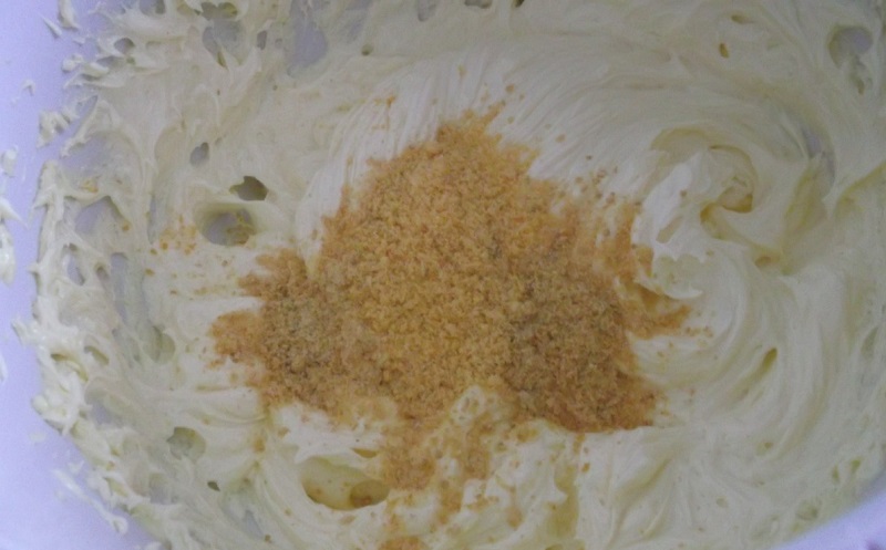 11. Ubij 160 g masła do uzyskania kremowej konsystencji i stopniowo wlewaj syrop pomarańczowy nie przerywając ubijania. Powinnaś uzyskać gładki krem ​​maślano-pomarańczowy.