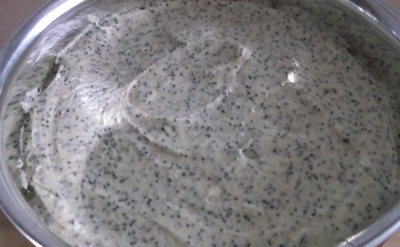 6. Na przemian z mąką, stopniowo dodawaj również mak (wraz z sokiem). Dokładnie wymieszaj. Ciasto powinno mieć gładką, jednolitą konsystencję.