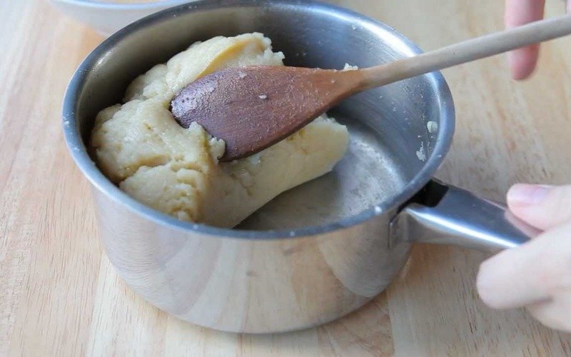 Na średnim ogniu zagotuj w małym garnku wodę oraz masło. Następnym krokiem jest dodanie mąki. Pamiętaj, aby ją przesiać przez sitko. Teraz cały czas mieszając, czekamy,  aż wszystkie składniki połączą się w jednolitą masę.