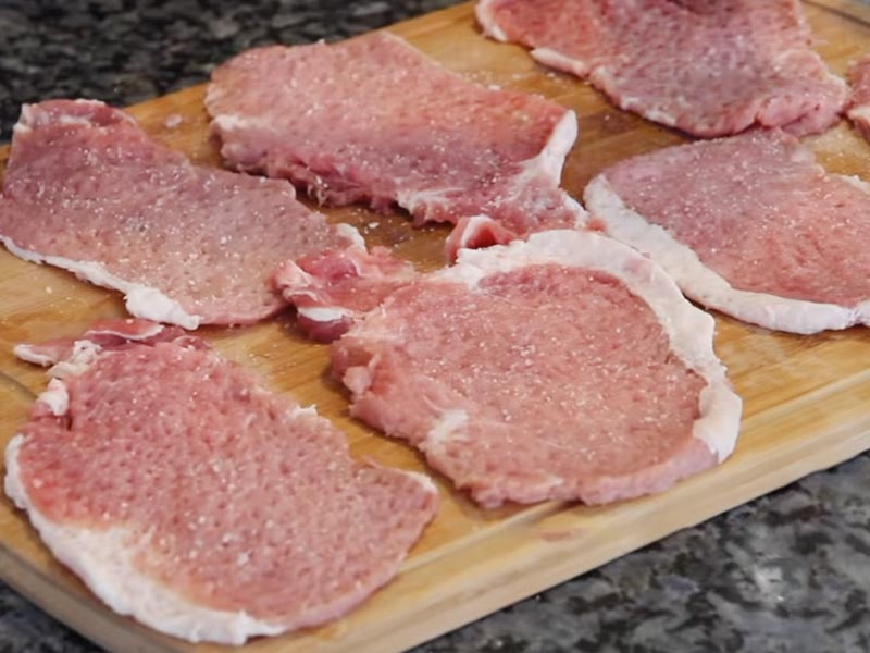 Zacznij od pokrojenia mięsa na plastry o grubości około 1 cm. Każdy plaster rozbij z obu stron, następnie oprósz solą i pieprzem. Rozbite mięso włóż do pojemnika na 15 minut, aby nasiąkło przyprawami.