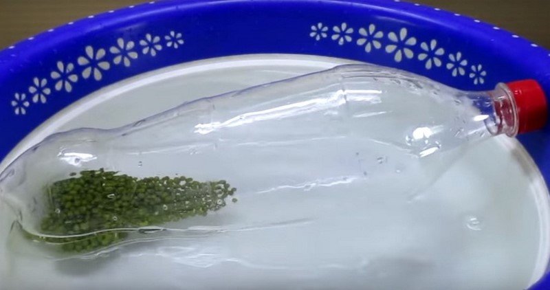2.W misce z woda namocz wszystkie nasiona, po czym powybieraj tylko te dobre. Nasiona fasoli zalej 2 szklankami gorącej wody oraz 3 szklankami zimnej, po czym odstaw na 60 minut. Po upływie tego czasu przenieś nasiona do butelki , następie zakręć nakrętkę.