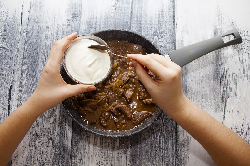 Zawsze lubiłam połączenie śmietany i grzybów. Są to uniwersalne produkty, idealne do prawie każdego mięsa i makaronu. Wątróbkę z pieczarkami w śmietanie przygotujesz bardzo szybko, a dodatkowo znajdzie się miejsce dla wyobraźni.