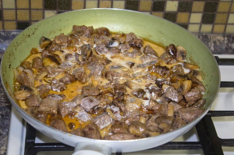 Wołowina duszona w pysznym sosie jogurtowym z dodatkiem cebuli oraz pieczarek. Tak przygotowany obiad zachęci każdego domownika