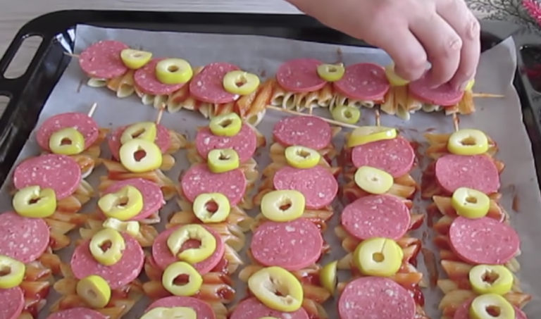 Przepisy kulinarne Wspaniały pomysł na makaron- potrzebne będą patyczki do szaszłyków- każdemu z domowników posmakuje ten przepis. Last updated lut 7, 2022 1 932 Rewelacyjna metoda na gotowanie makaronu. Zachwycone dzieci wciąż biorą dokładkę. Przygotuj: Wodę (800 ml) Makaron (250 gram) Łyżeczka soli (8 gram) Łyżeczka oliwy z oliwek (5 ml) 2 łyżki ketchupu (25 gram) Patyczki do szaszłyków (8-9 sztuk) Łyżka oliwy z oliwek (10 ml) Kiełbasa lub salami (200 gram) Czarne oliwki (7-8 sztuk) Zielone oliwki (10 sztuk) Ser cheddar (200 gram) Kukurydza (15 gram) Sposób przygotowania: 1. Do garnka wlej wodę. Dopraw solą i olejem, następnie dokładnie wymieszaj. 2. Do gotującej się wody wrzuć makaron , następnie gotuj przez 10 minut. 3. Po tym czasie odcedź makaron i odstaw aż ostygnie. Na patyczki do szaszłyków nadziewamy ugotowany makaron. 4. Na blachę wyłożoną papierem, ułóż gotowe patyczki z makaronem. 5. Ketchupem posmaruj makaron. 6. Na posmarowany ketchupem makaron połóż kiełbasę lub salami , a następnie oliwki. 7. Wszystko dokładnie posyp startym serem. 8. Na ser połóż kiełbasę lub salami i kukurydzę . 9. W nagrzanym piekarniku piecz przez 20 minut w 180 stopniach. 10. Wspaniale wyglądające makaronowe szaszłyki są gotowe. Smacznego!