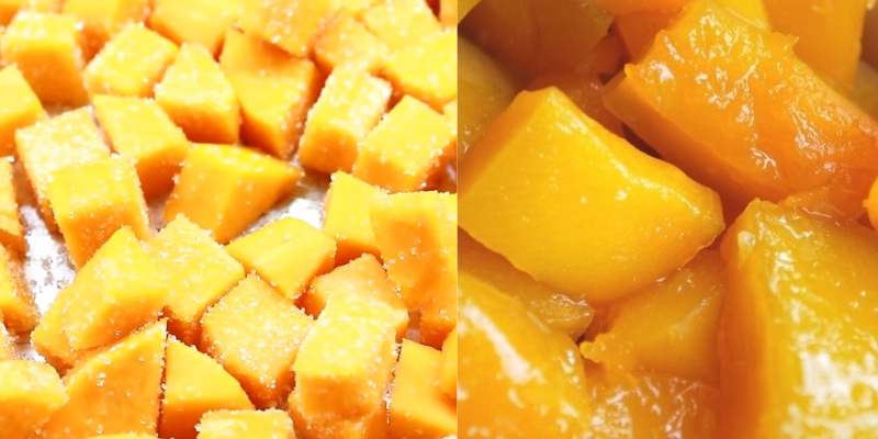 Wewnątrz kostki dyni są słodkie, a na zewnątrz lekko kwaśne. Zamiast cytryny możesz dodać mandarynkę, pomarańczę, skórkę z cytryny, suszone owoce, orzechy, cynamon – wszystko, czego dusza zapragnie!