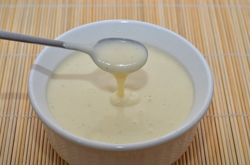 3. Potem dodaj mleko, przyprawy i sól. Ciągle mieszaj sos przez 10 minut, aby nie było grudek. Gdy zgęstnieje, usuń go z ognia.