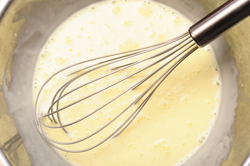 3. Ubij śmietanę z jajkiem, w razie potrzeby dodaj cukier. Pamiętaj, że dynia to słodkie warzywo, więc nie przesadź z cukrem.