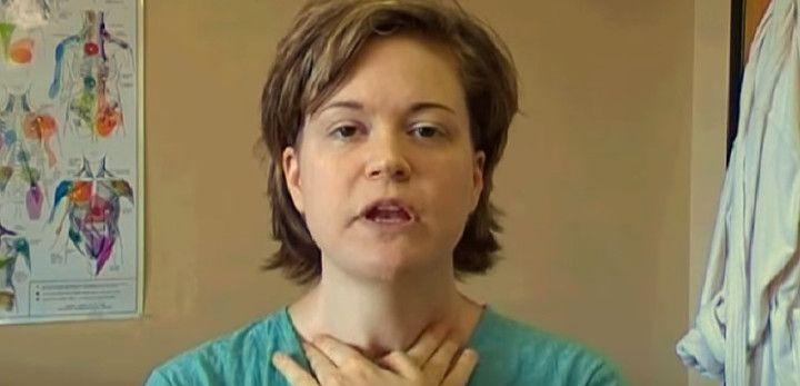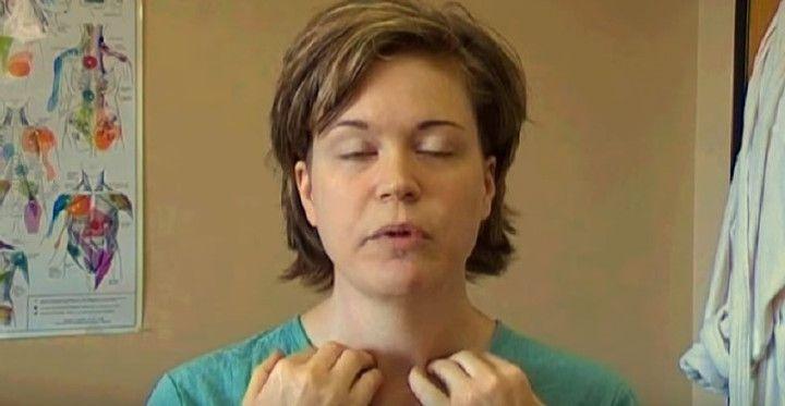 Połóż ręce na wzgórku obojczyka. Oklepuj delikatnie to miejsce palcami. Pamiętaj, aby masaż odbywał się od góry do dołu.