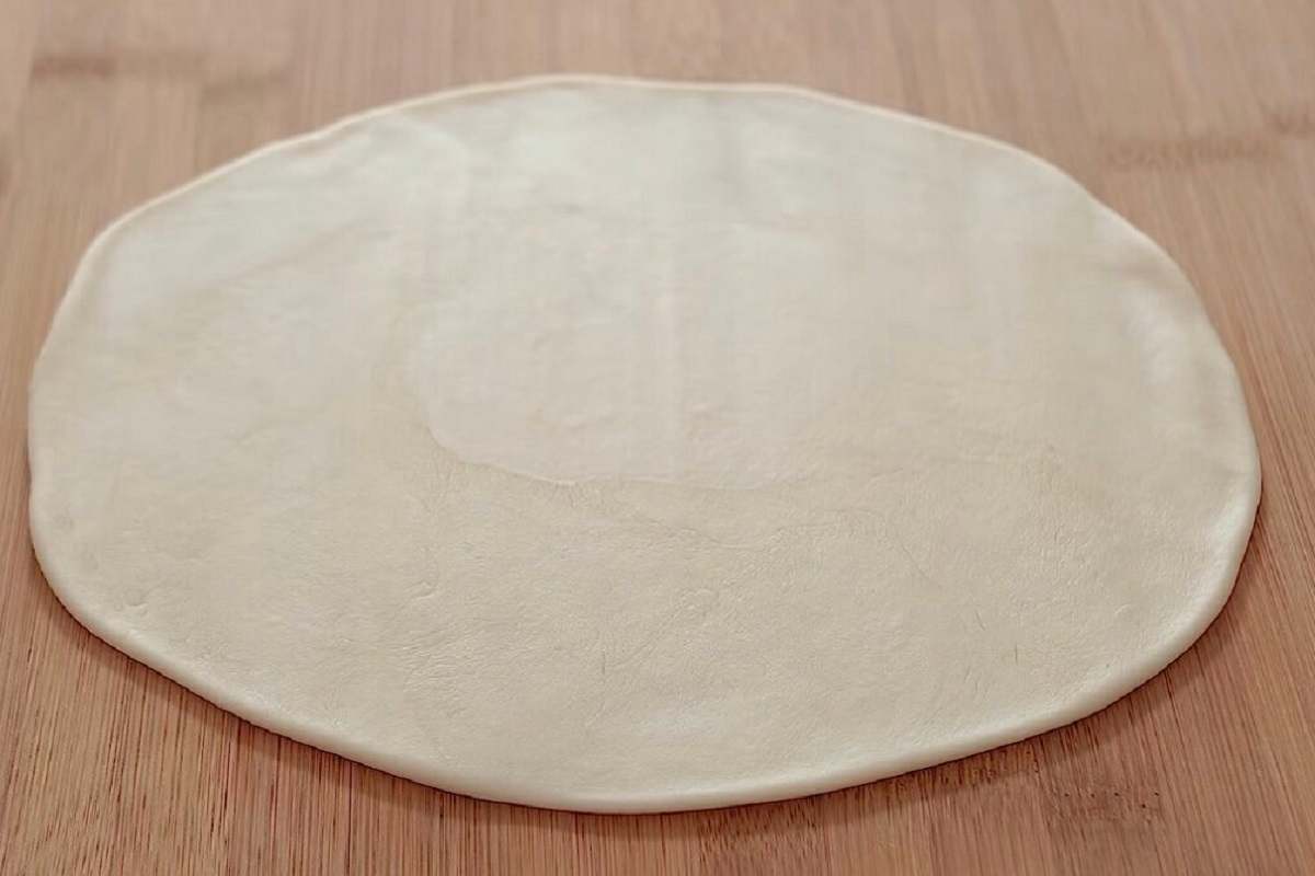 3.Po upływie godziny rozwałkuj ciasto na kształt koła.