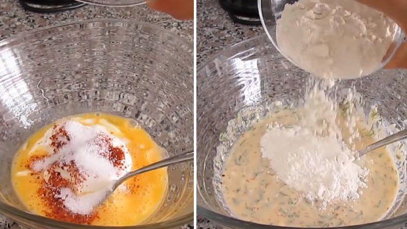 2. W głębokiej misce, wymieszaj jajka ze śmietaną, dodaj sól, paprykę, mąkę, drobno posiekany koperek i wszystko dokładnie wymieszaj. Ciasto powinno mieć konsystencję gęstej śmietany. Ziemniaki najpierw obtocz w cieście, a następnie smaż na rozgrzanej patelni z olejem.