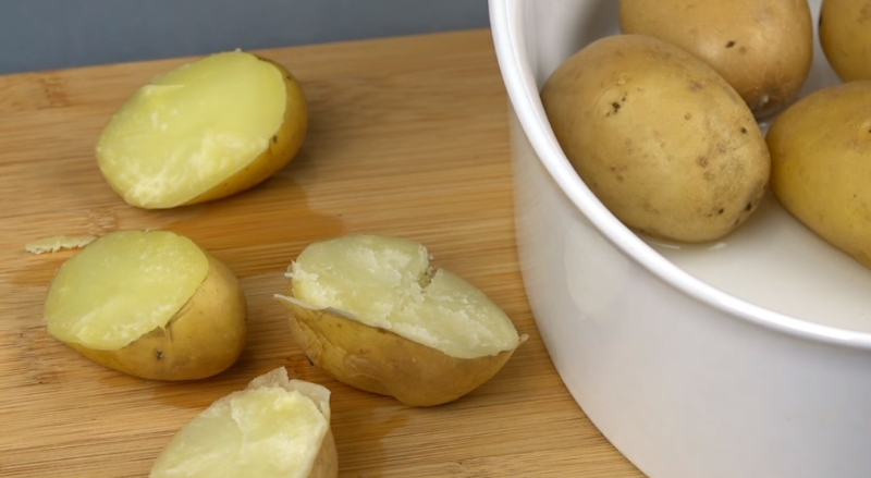 5. Ziemniaki gotowe. Możesz umieścić je w misce z zimną wodą. Obieranie ich wówczas nie sprawi ci kłopotu.