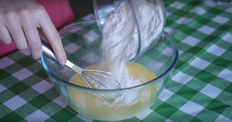 1.Do dużej miski wlej pół litra wody, następnie dodaj cukier, sól, jajka oraz sodą , dokładnie wymieszaj ze sobą składniki.